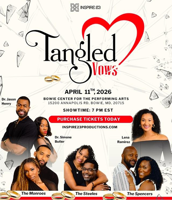Join us on Saturday, April 11, 2026, at 7:00 PM at the Bowie Center for the Performing Arts Center for an unforgettable evening filled with love, laughter, and emotional twists. Tangled Vows takes you inside the lives of three couples navigating the complexities of love, marriage, and loyalty. As they face the pressures of their relationships, they turn to couples’ counseling to strengthen their bonds. But as hidden feelings and long-buried secrets are revealed, each couple must confront the consequences of what’s been left unsaid.